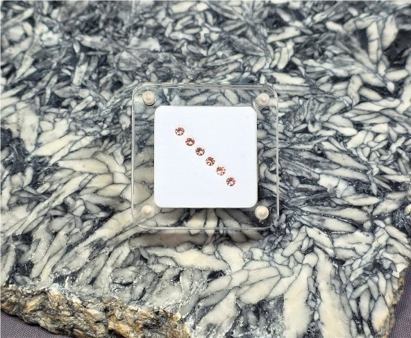 Here is a rare matched grouping of 6 round cut heated Benitoite gems.