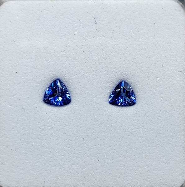 Pair of Faceted Benitoite Gemstones .36 ctw., Trillion Cut