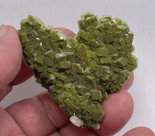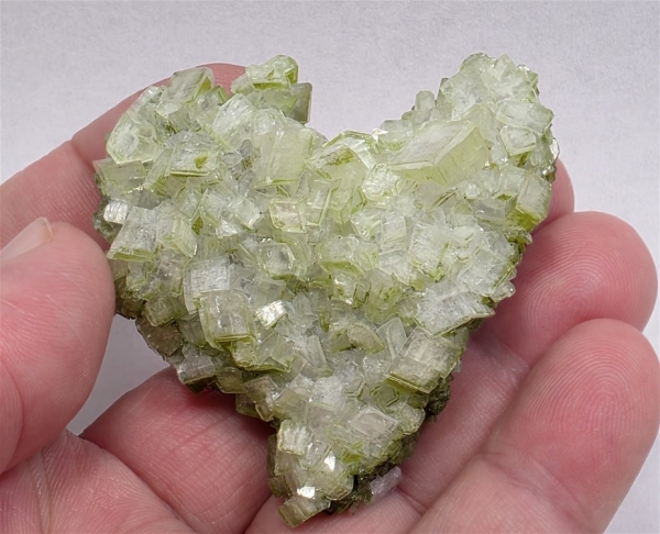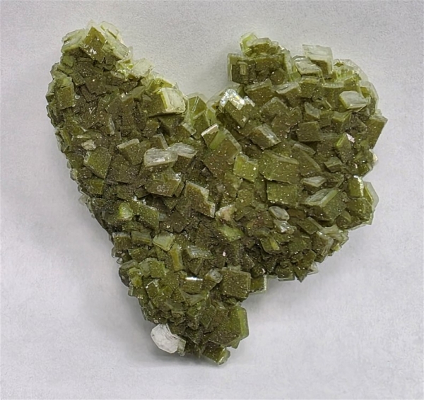 This is a heart shaped cluster of calcite rhombohedral crystals,