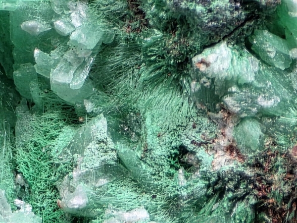 Malachite & Selenite on Copper, Bisbee, Cochise Co., Arizona